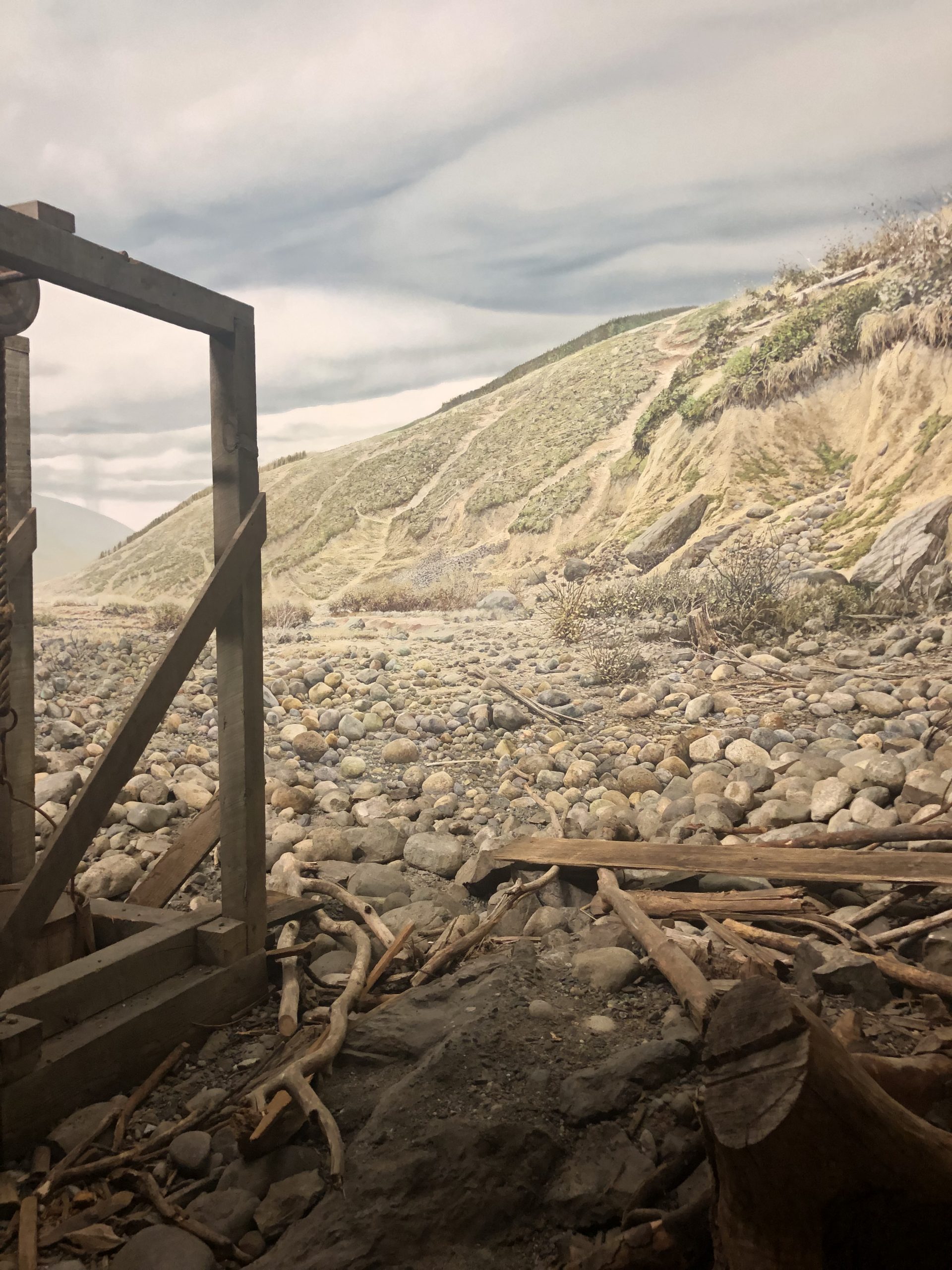 Part of  the Human History Gallery, the Barkerville Diorama illustrates the ecological devastation of a watershed caused by the use of arsenic in rampant placer mining for gold during the 1860s. The museum closed the Gallery to the public in 2022, officially to decolonize its Eurocentric narrative, and only reopened after a public outcry. Despite its astonishing illusion and its important lesson in environmental history, this diorama is at risk of being dismantled so that the hall can be recurated and redesigned.